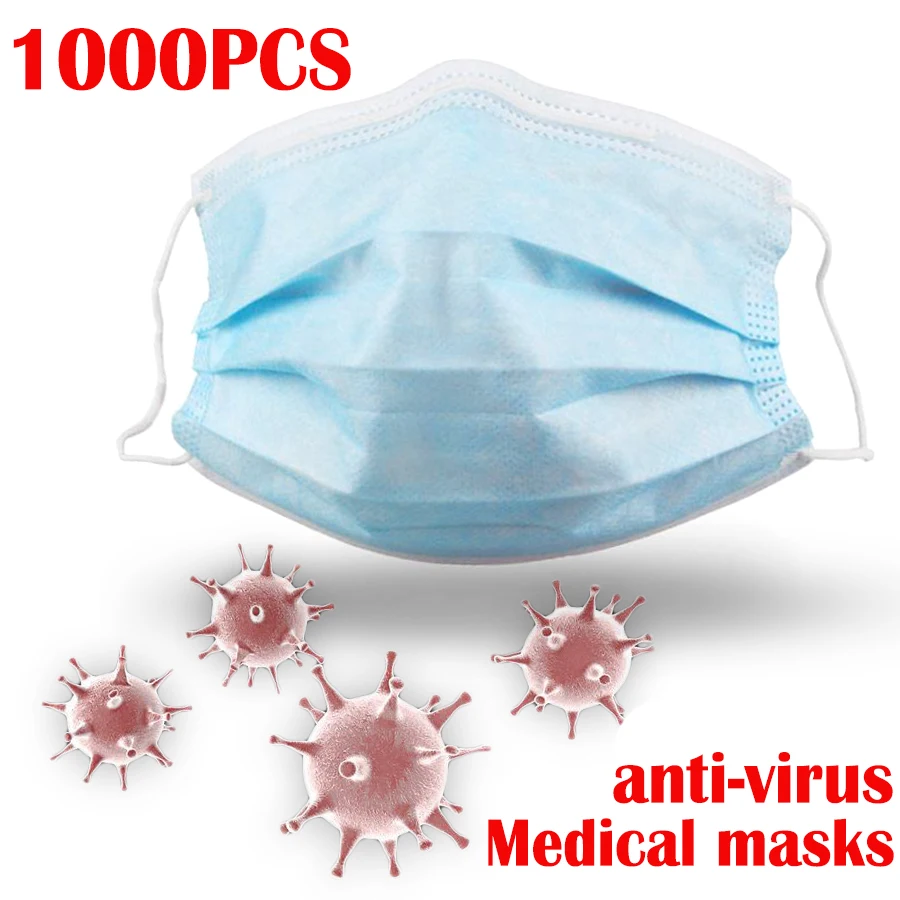 Purchase 1000Pcs Anti Virus Stof 1 Wegwerp Masker Virus Nonwove 3 Layer Filter Mond Gezichtsmasker Dust Medi