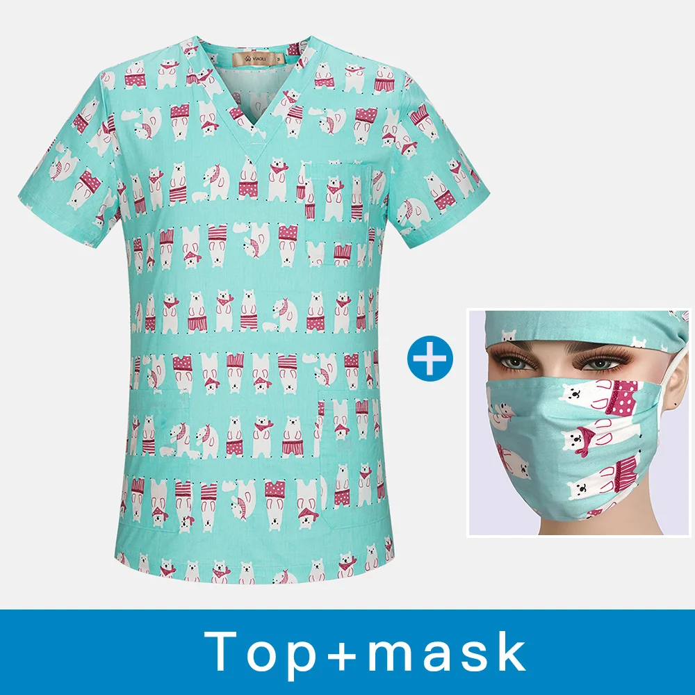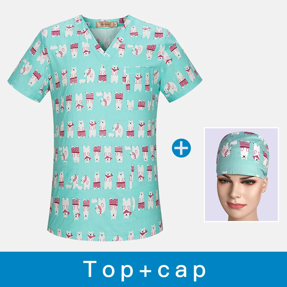 - Cartoon print Medical Surgical pharmacy doctor nurse work uniform spa beauty salon shirt men&women scrub tops medical clothing